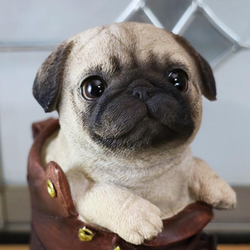 ブーツドッグ かわいい パグ 樹脂製 置物 レジン製 オブジェ