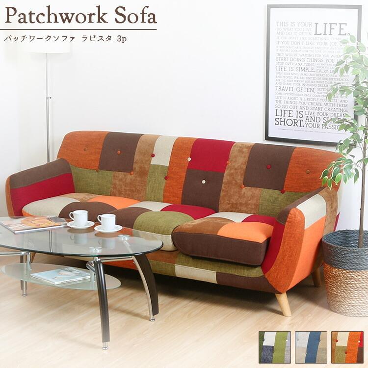 ソファ 3人掛け パッチワークソファ ラビスタ 3p グリーン ブルー