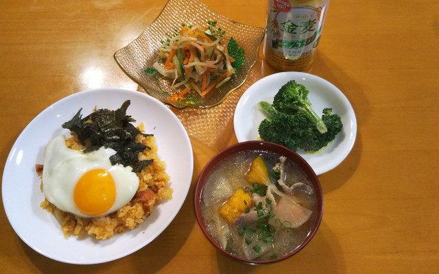 献立 野菜たっぷりキムチチャーハンと肉まんで夜ごはん のんすけの