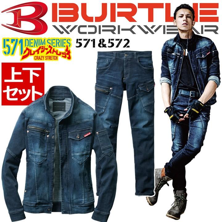 上下セット バートル 作業着 デニムジャケット 571 デニムカーゴパンツ